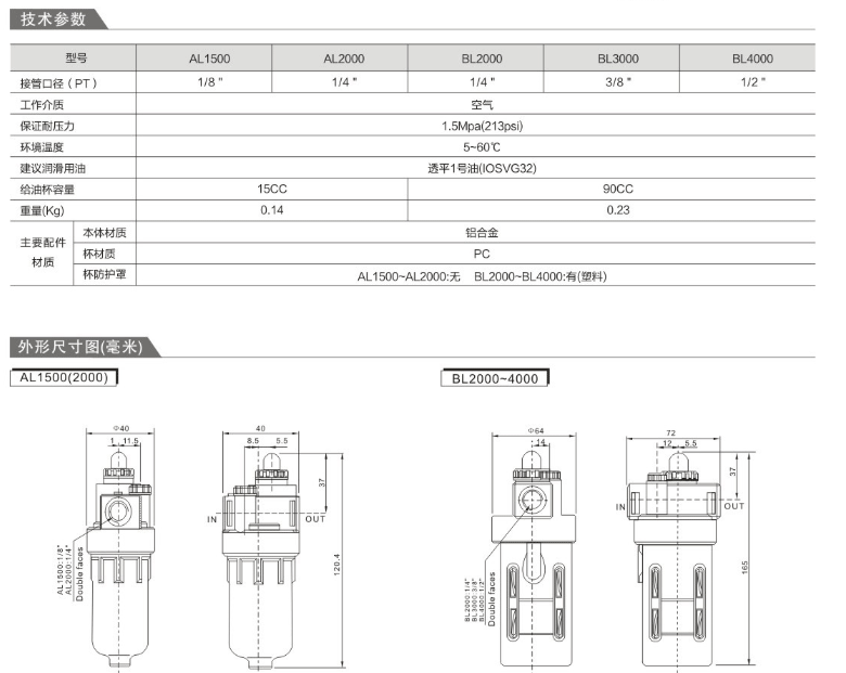 亞德客型AL、BL系列油霧器