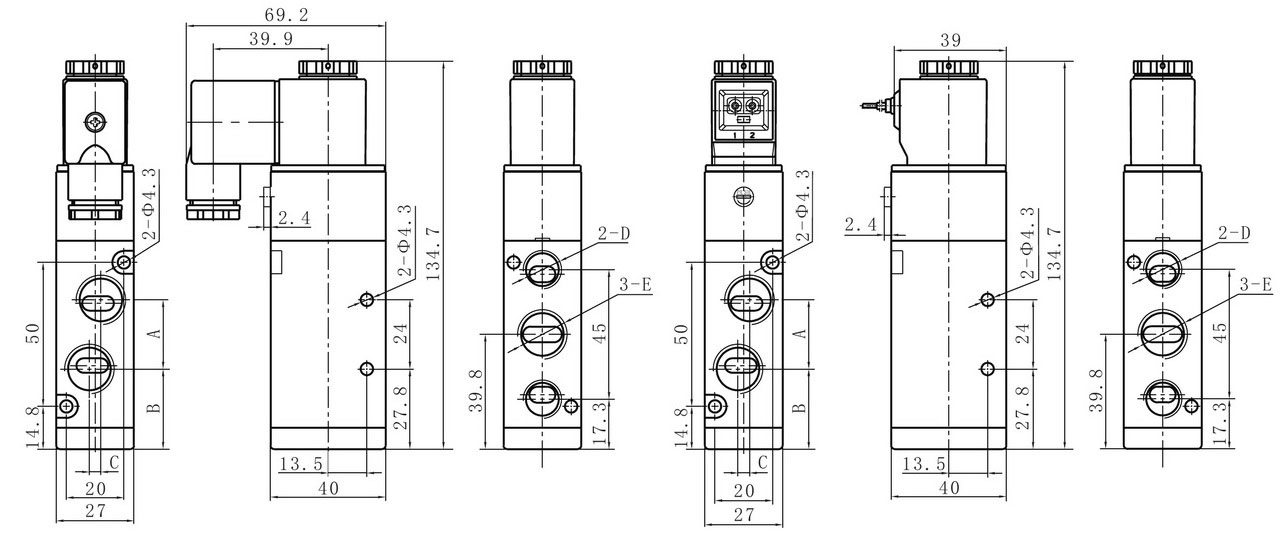 4V310 Series directional control valves is a body ported mounting type and valve can be surface mounted.