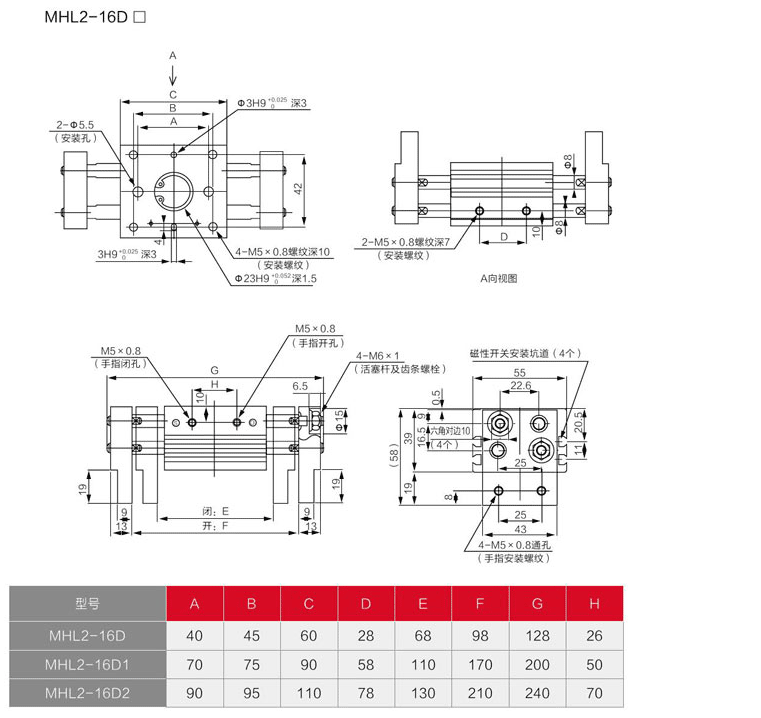 MHL2 Parallel Style Air Gripper: Wide Type