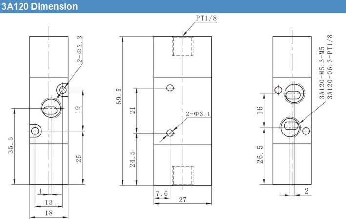 .3A Series 3 port 2 position normal closed air control valve:3A100, 3A200, 3A300 series single solenoid ,double solenoid flow control valve.