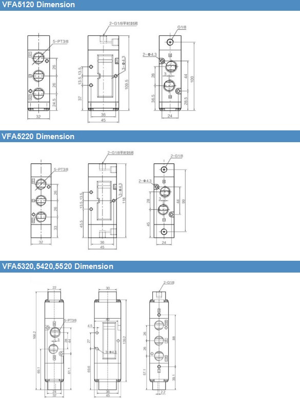 .VFA Series VFA5120 VFA5220 VFA5320 5/2 Way Aluminum Alloy Single Electrical Air Flow Control Valve