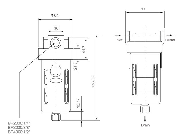 AF2000 BF2000 BF3000 BF4000 manual drain Pneumatic source treatment unit Air filter