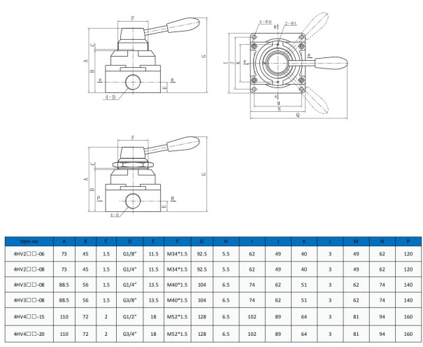 HV /4HV series 4 port Hand Control Pneumatic Switch Rotary Valve